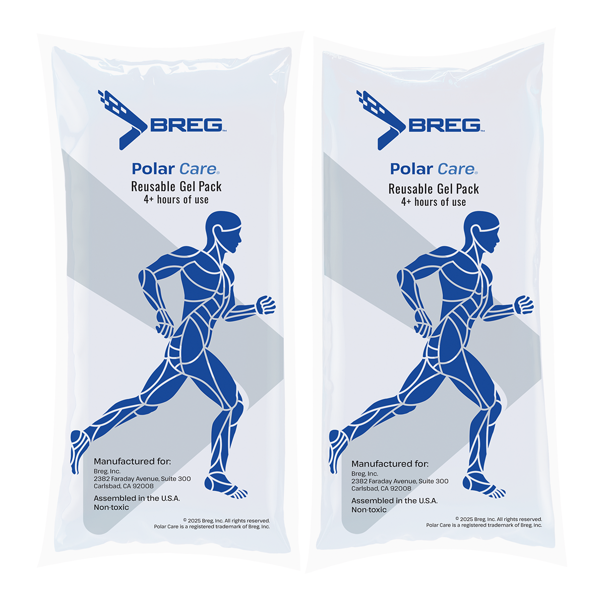 Breg’s Polar Care Pack line is a complete line of gel pack products with wraps for the ankle, knee, hip, and shoulder. The premium gel packs are vacuum packed, so the gel stays evenly distributed and pliable at standard freezer temperatures. These unique gel packs are specifically formulated to provide cold therapy for more than two, three or four hours – depending upon the pack.. Each wrap features elastic straps that provide static compression while holding the gel packs firmly in place. Kits come with a body-part specific wrap and the option of two or four premium gel packs. All kitted items are sold individually. The Polar Care Pack line is an excellent addition to your motorized cold therapy protocol.