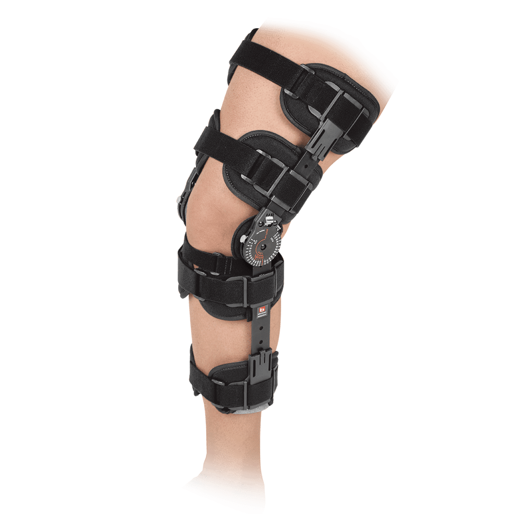 Telescoping post-operative brace with patient-friendly adjustment tabs. Available in two adjustable sizes.